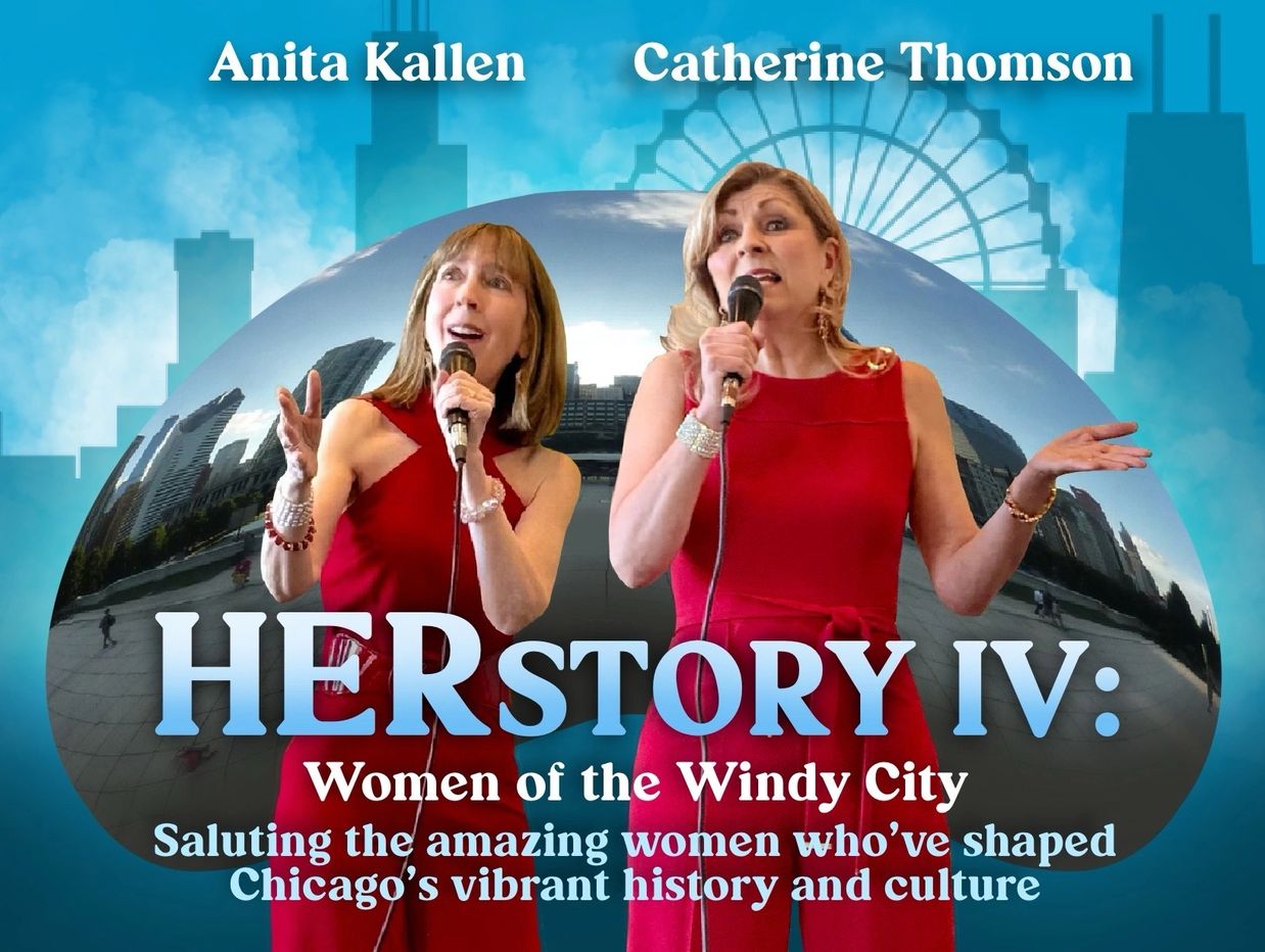 HERstory IV: Women of the Windy City debuted to a sold-out crowd (and standing ovation!) on November 15th, 2025. HERstory IV brings you Anita and Catherine's musical tribute to the amazing women who have shaped Chicago's vibrant history and culture. With music by Mercer, Schwartz, Parton, Strouse, Cornelia, Sondheim, and others, they’ll spotlight an array of women – from the famous and infamous to the “hidden figures” who have left an indelible mark on our city.
